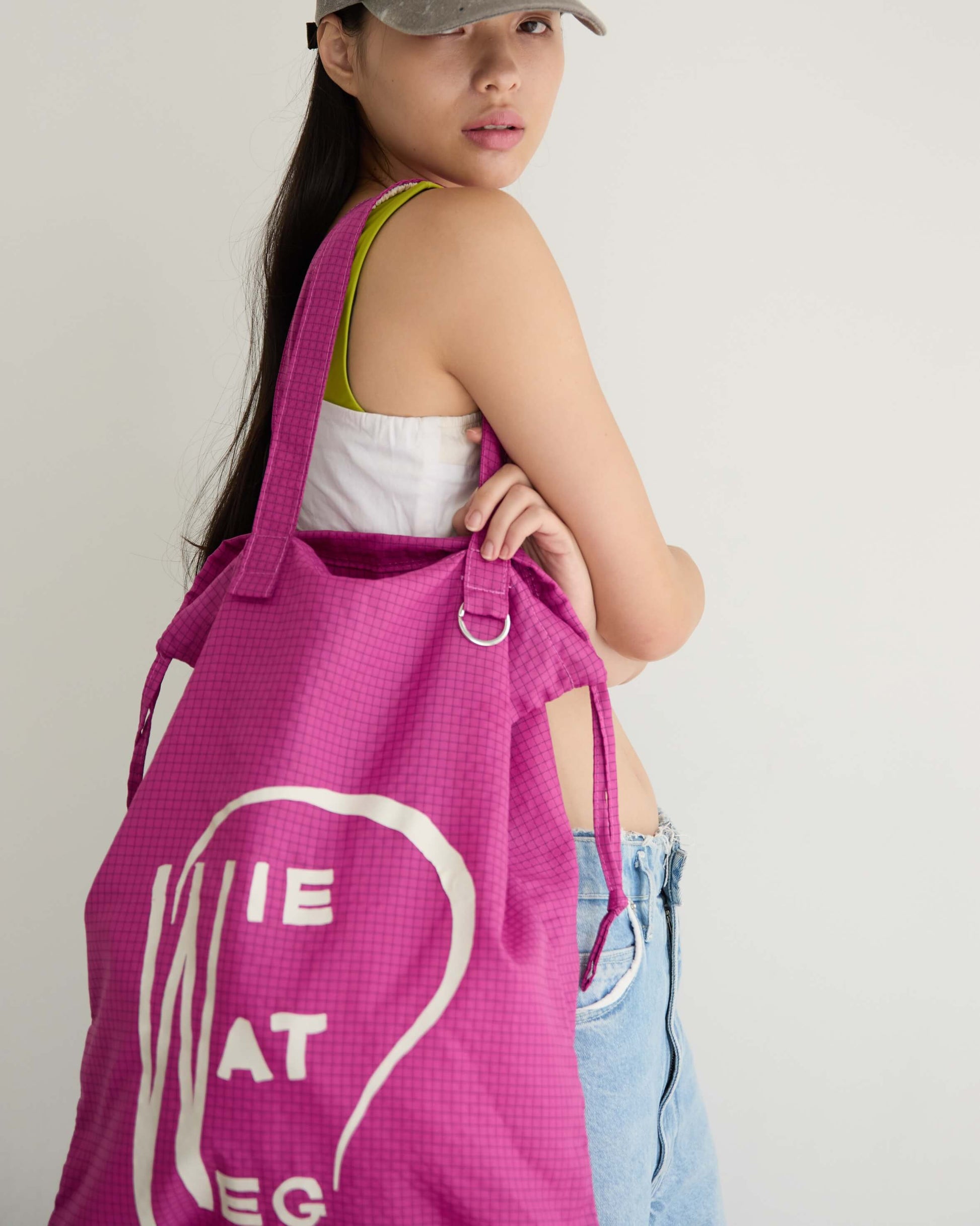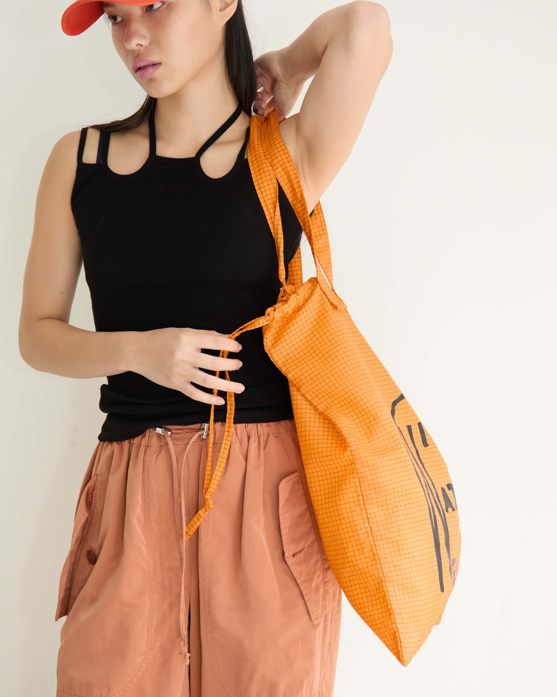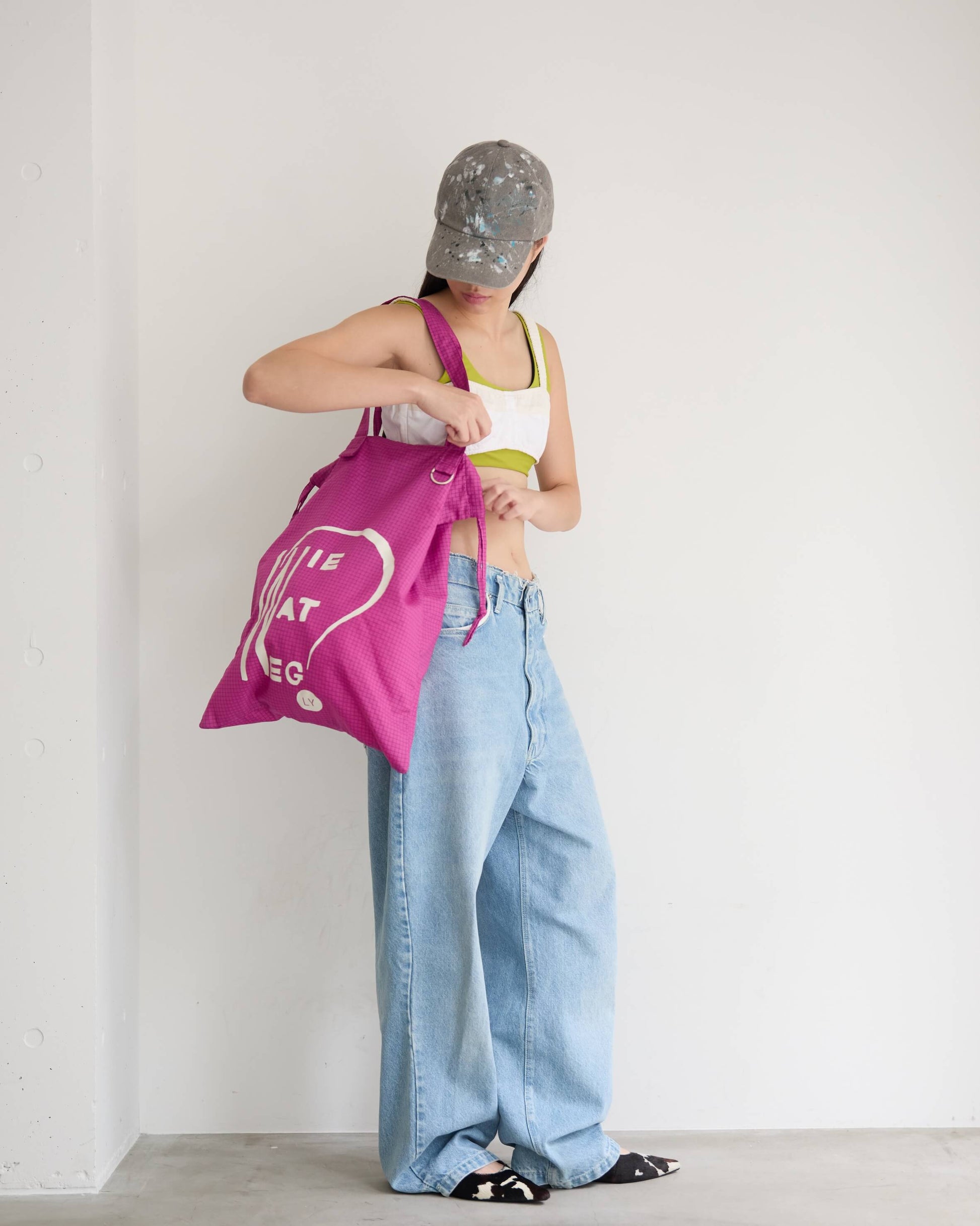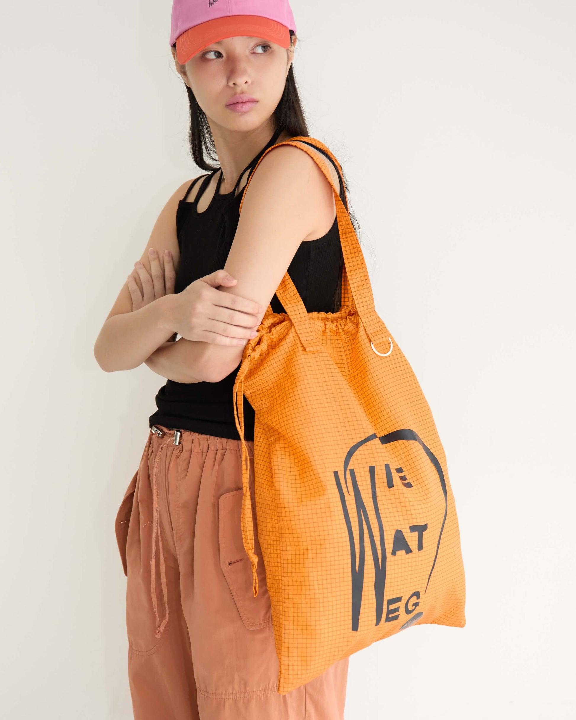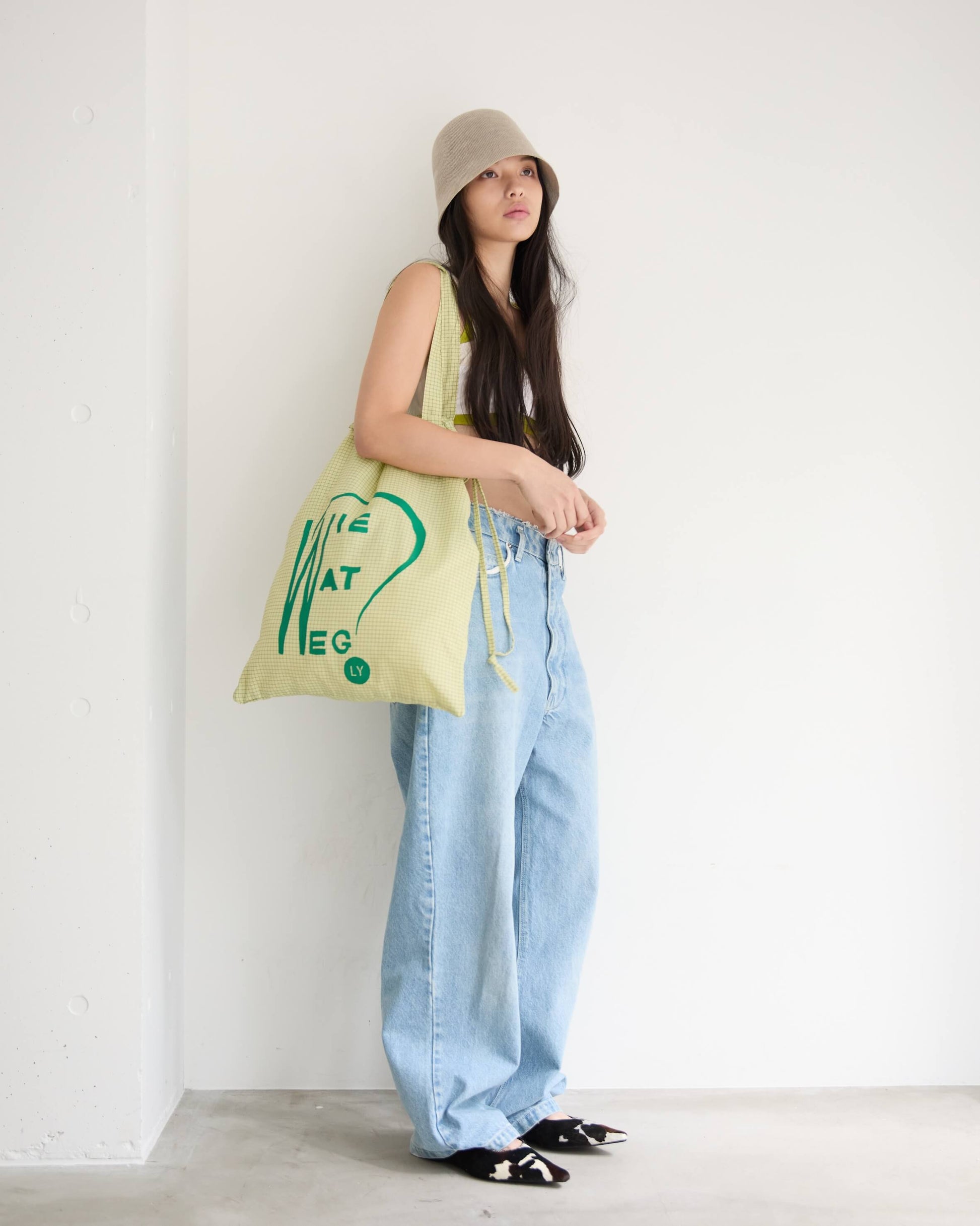 旅先でも日常でも欠かせないサブバッグは、A3サイズまですっぽり入る大きめのシルエットで、本や洋服をたくさん買ってもしっかり収まるサイズ感に。オランダで見つけた古い本の表紙をもじったロゴプリント。